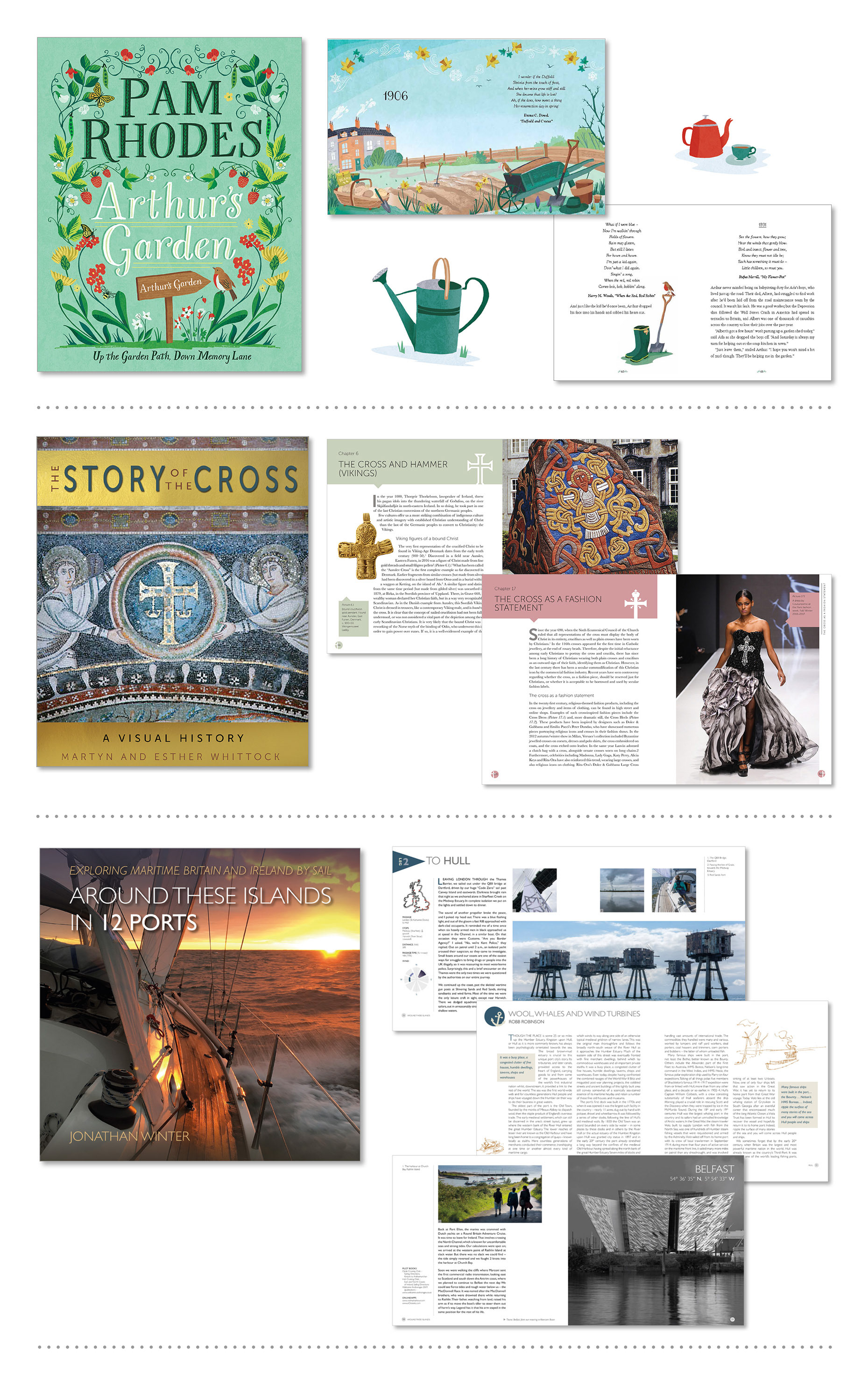 A broad range of colour illustrated titles. I have worked with editorial teams and photo libraries to develop accessible visual and informative guides. A selection of knitting pattern books and cover designs that draw on history, reference and modern life.
