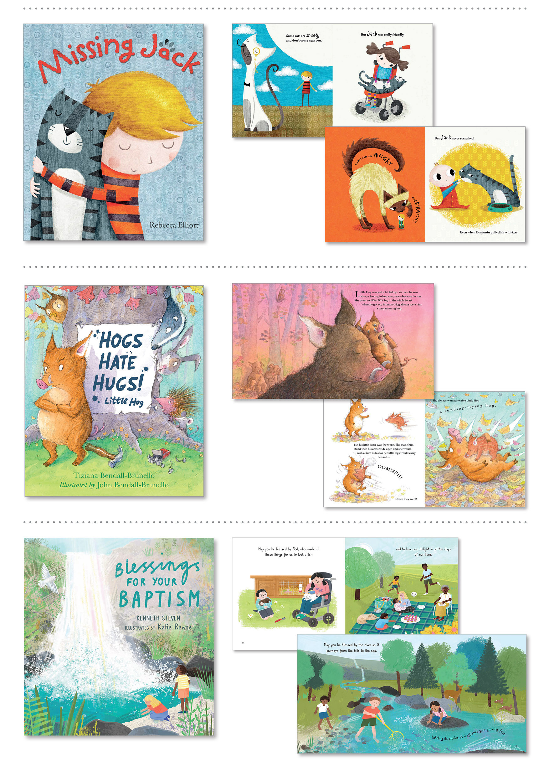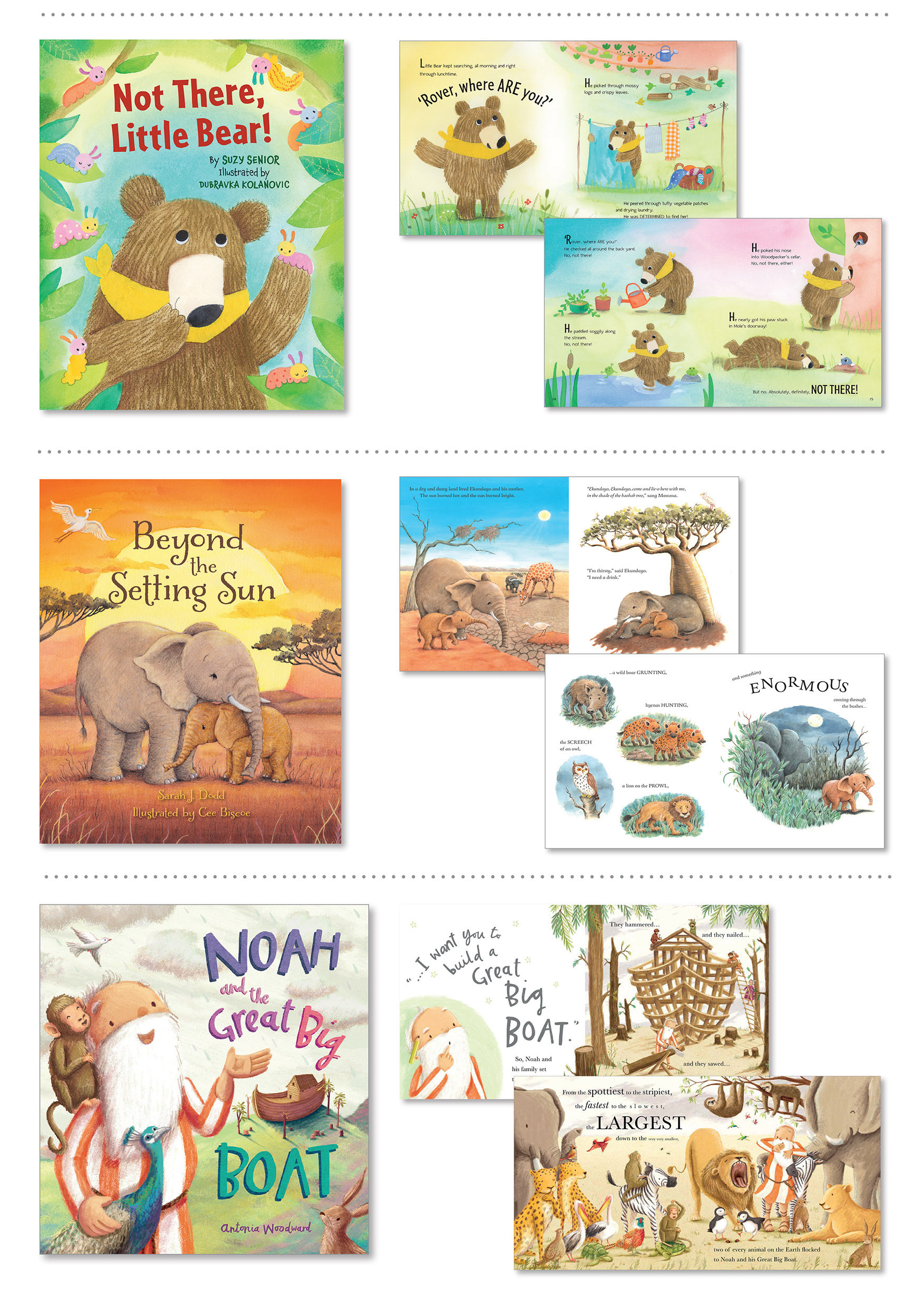 I have been fortunate to work on some wonderful picture books and have developed strong working relationships with authors and illustrators. Topics cover well known traditional Bible stories, first experiences, child development and bereavement.